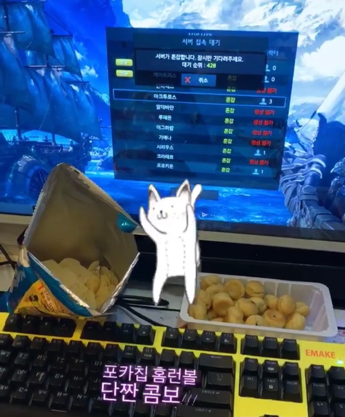 산과 나는 첫 신혼집이었던 오피스텔 원룸에서 아이맥과 데스크탑을 나란히 놓고 퇴근 후에 열심히 게임을 하다, 주말에는 PC방으로 가서 새벽에 집으로 돌아오곤 했다. 아주 어릴 때를 제외하곤 내가 그동안 즐겼던 게임들은 보통 모바일 게임이었고 결혼 전에도 PC방 데이트를 한 적은 거의 없었는데 로스트아크 덕분에 나는 PC방의 즐거움을 알아버렸다. PC방에 앉아 있으면 클릭 한 번으로 온갖 먹거리가 내 앞에 놓였는데, 심지어 다 맛있었다. 결혼식이 끝나고 다이어트의 반작용으로 눈에 보이는 모든 음식을 아무 죄책감 없이 먹어 치우던 당시의 나는 스팸마요덮밥을 먹으며 눈앞의 악마를 처단하고, 바삭바삭 감자칩을 씹으며 말을 타고 달렸다. 어떠한 스트레스도 없는 욕구 충족의 시간, 그곳은 천국이었다.