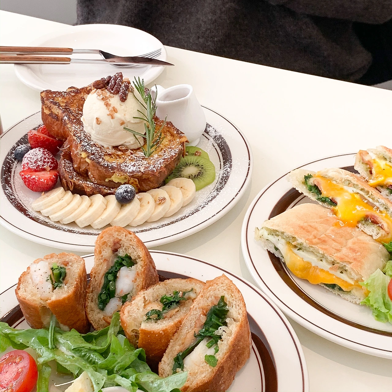 브런치라는 이름을 붙여 판매하는 메뉴를 사랑하지 않을 수 없다. 브런치라는 개념은 미국에서 통용되기 시작해 주로 미국식과 영국식 아침 식사 메뉴가 주를 이룬다. 스크램블, 달걀 프라이, 오믈렛과 같은 달걀 요리는 필수적이고(달걀은 어쩜 어떻게 조리해도 다 맛있을까?) 짭짤한 소시지, 베이컨에 다양한 빵까지! 그야말로 탄단지의 완벽한 조화이며 온 혀의 미뢰를 자극하는 구성이 아닐 수 없다. 달걀물에 푹 적셔 구워내 설탕을 뿌린 프렌치토스트 한입, 베어 물면 탱글탱글한 식감과 함께 육즙이 입 안을 감싸고 소금이 뛰어놀기 시작하는 소시지 한입, 자극에 놀란 입을 부드럽게 달래주는 담백한 오믈렛 한입. 행복한 음식이 가득 눈 앞에 펼쳐져 있는데 어찌 사랑하지 않겠는가.