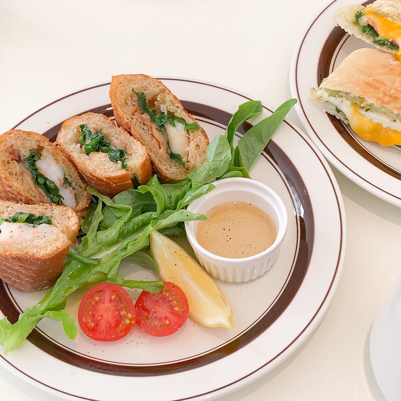 감바스 바게트 파니니는 마늘과 올리브 오일, 새우를 넣고 조리한 ‘감바스 알 아히요’를 바게트 빵 안에 넣고 치즈를 추가해 파니니처럼 그릴에 구워 나온다. 먹기 좋게 잘라져 있어 손으로 들고 먹으면 간편하다. 감바스 알 아히요와 항상 함께 나오는 바게트를 파니 형태로 합친 형태인데 기존의 브런치 까페에서는 볼 수 없었던 메뉴라 재미있었다. 트러플을 첨가한 꿀을 첨가해 먹으면 단짠의 조화를 제대로 느낄 수 있다. 탱탱한 새우의 식감이 즐거움을 더해준다.