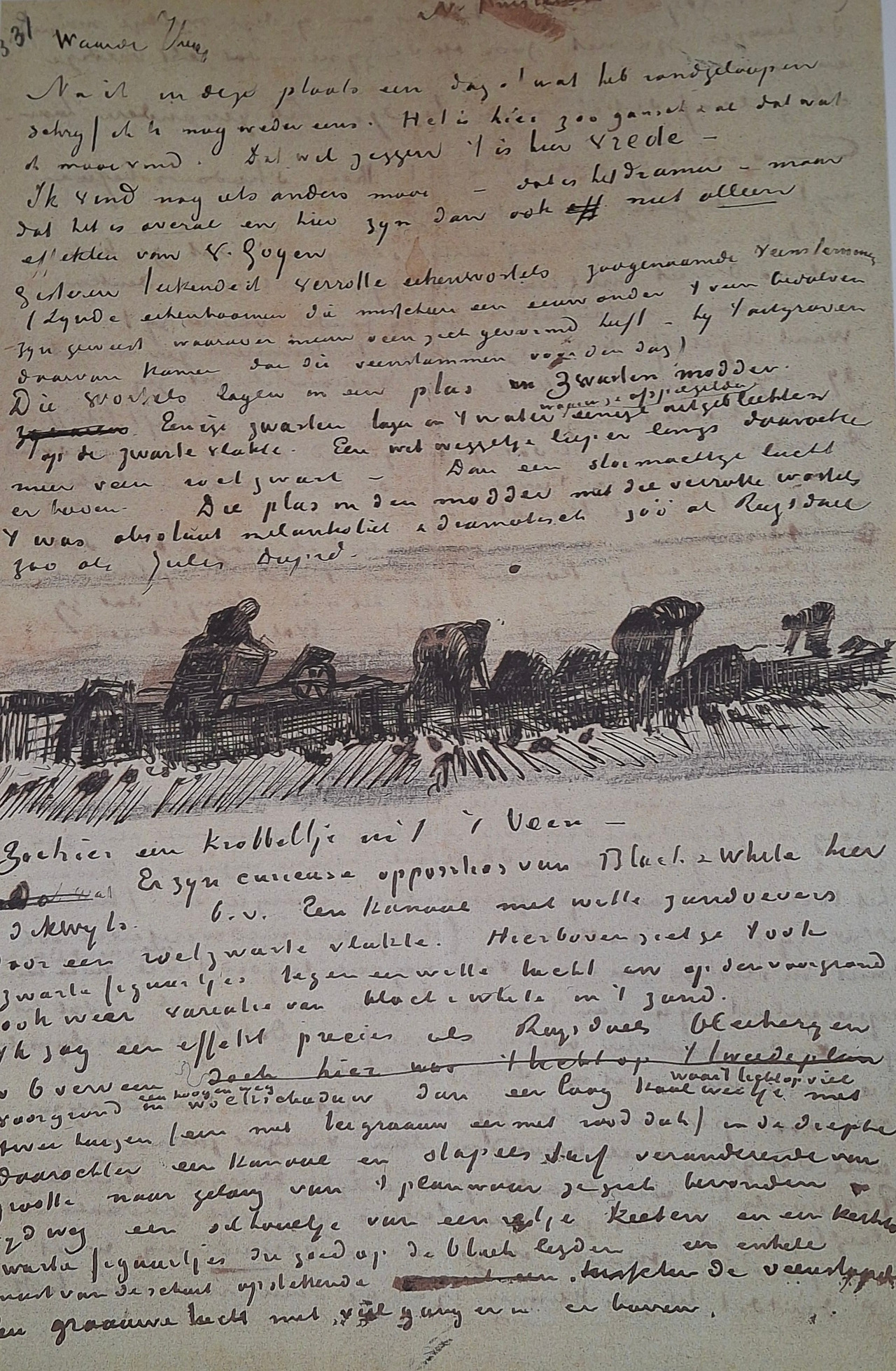 이후 테오의 경제 상황마저 불투명해지면서 그는 부모가 있는 뉘에넌의 집으로 돌아가 살게 된다.(1883년) 그러나 ‘시엔’의 사건 이후 가족의 일원으로 대접을 받지 못하며 부모와의 관계는 더욱 악화되었고, 그는 쓰지 않던 세탁실을 아틀리에로 만들어 2년 가까이 지냈다. 관계가 단절된 곳에서 보낸 고립의 시간이었다. 그런데 나는 이 시기에 테오에게 보내는 편지들을 읽으면서 고립의 감정을 거의 느끼지 못했다. 그는 자신이 지금 무엇을 그리고 있는지, 새롭게 발견하고 그리된 것에 대해 생생한 문장으로 써 내려간다. 하루 종일 쉼 없이 그림을 그렸고, 감자밭을 파 엎는 남자들의 뒤를 따라 걸으며 스케치를 했다. 이른 아침부터 밤늦게까지 아무것도 하지 않고 지나는 날이 단 하루도 없다고 적는다. 그 편지들에는 자신의 화법과 빛의 효과를 발견하는 환희, 색의 다양한 변이를 탐구하는 열정, 그리고 자신에게 스펙트럼처럼 확장되는 색채감각에 대한 희망이 가득 차 있다.