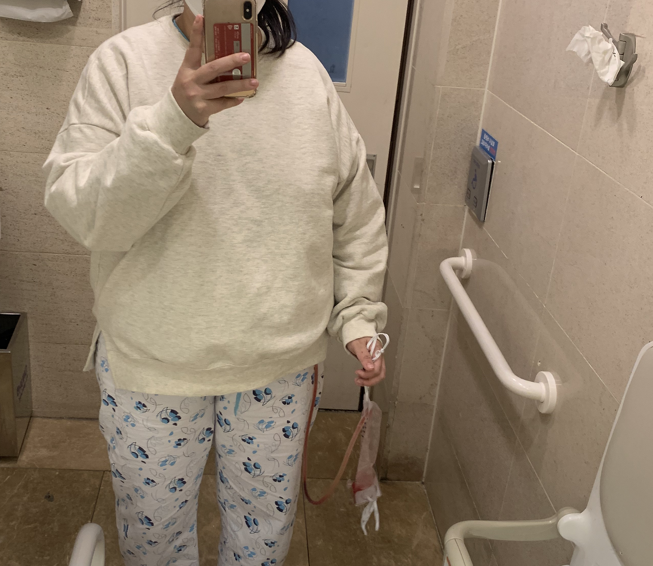 다음 날 아침, 보라 배웅 겸 엄마 마중을 위해 병원 1층 로비로 내려갔다. 양손은 물론 등에도 큰 백팩을 한 짐 지고 온 엄마는 보라를 보자 서운함과 고마움이 섞인 얼굴로 수고했다는 인사를 건넸다. 그리고는 곧바로 옆구리에 피주머니를 찬 나를 보며 발길질하는 시늉을 했다.