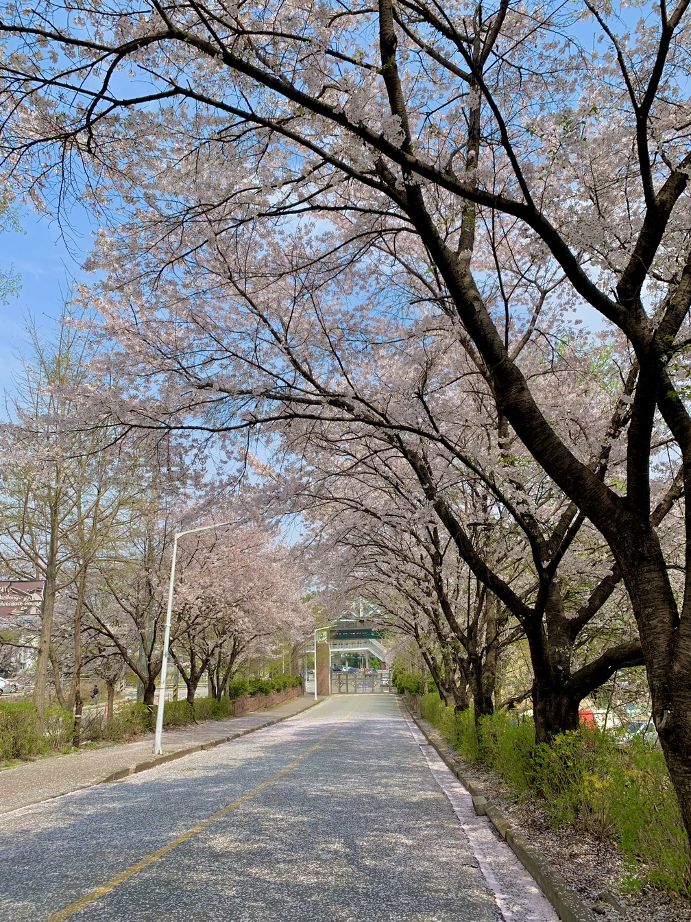 집 근처 대학교 정문은 우리 동네에서 가장 유명한 벚꽃길 명소다. 꽃나무가 어찌나 큰지 하늘에서 서로 깍지 지를 이룬 가지가 벚꽃 터널을 만들어 낼 정도였다. 우리나라에서 가장 아름다운 찐 벚꽃 명소는 이 대학교 정문이기 때문에 따로 벚꽃을 찾아다닐 필요가 없었다. 하루는 강아지 호두와 함께 이곳으로 벚꽃 구경을 나왔다. 호두가 우리 가족이 되었을 때부터 매년 봄이면 이 벚꽃길을 걸으면서 '내년에도 같이 오자'며 약속을 했는데 올해는 그 말이 나오지 않았다. '엄마한테 매년 벚꽃 보러 나오자고 해.'라는 말로 대신했다.
