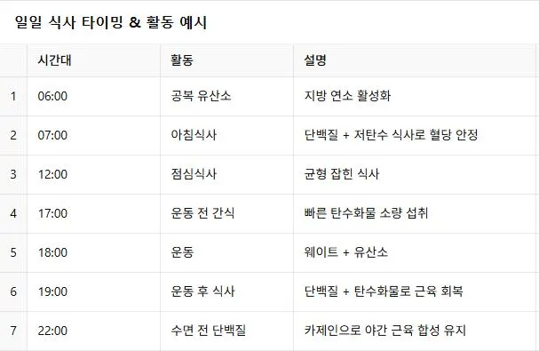 인슐린 조절: 아침 공복 유산소, 식사 간격 확보, 저녁 탄수화물 제한