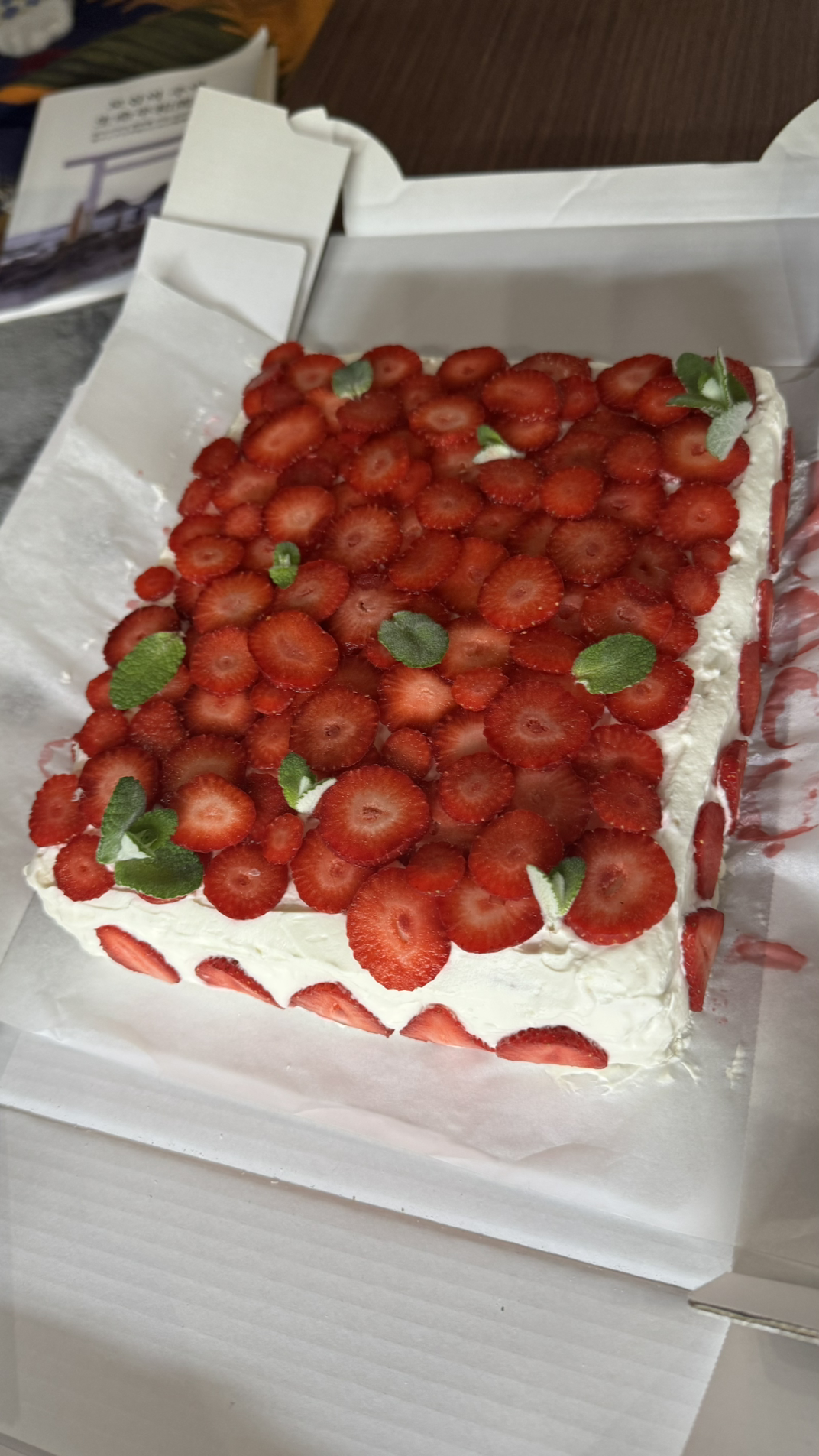 오후에 현경 교수님이 주문한 100% 오가닉 딸기 케익이 배달되었다. 유코와 현경 교슈님의 생일이 4월 24, 25일로 나란히 있다면서 같이 생일을 축하하는 작은 파티가 열렸다. 케이크를 자르고, 축하 노래를 부르며, 우리는 서로의 삶에 축복을 보냈다. 그 순간, 이토시마의 봄 밤은 따뜻하고 부드러운 별빛으로 가득 찼다.