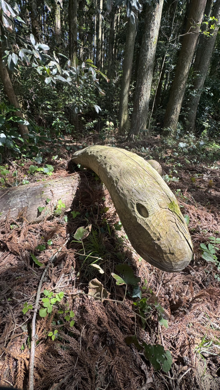 숲 입구에 후지몽이 직접 조각한 뱀 신이 세월에 닳아져 있었는데 후지몽 설명에 따르면 나무 뱀신이 닳아 형체가 없어지면서 숲의 정기와 하나가 된다고 한다. 그러면 뱀신은 영원히 숲에 머물면서 숲을 지켜준다고 한다. 우리는 후지몽이 정성껏 가꾸고 있는 숲에 누웠다. 등은 시원했고 눈을 들면 길게 뻗은 나무가지와 잎파리 사이로 쏟아지는 햇빛이 정겨웠다. 우리는 손에 흙을 묻히고, 바람결 속에 귀를 기울이며 나무들과 대화했다. 숲은 살아 있었다. 숲은 자연과 함께 누워 공부하고 웃는 우리를 따뜻하게 보듬어주었다. 우리의 손길을 고요히 받아주었다.