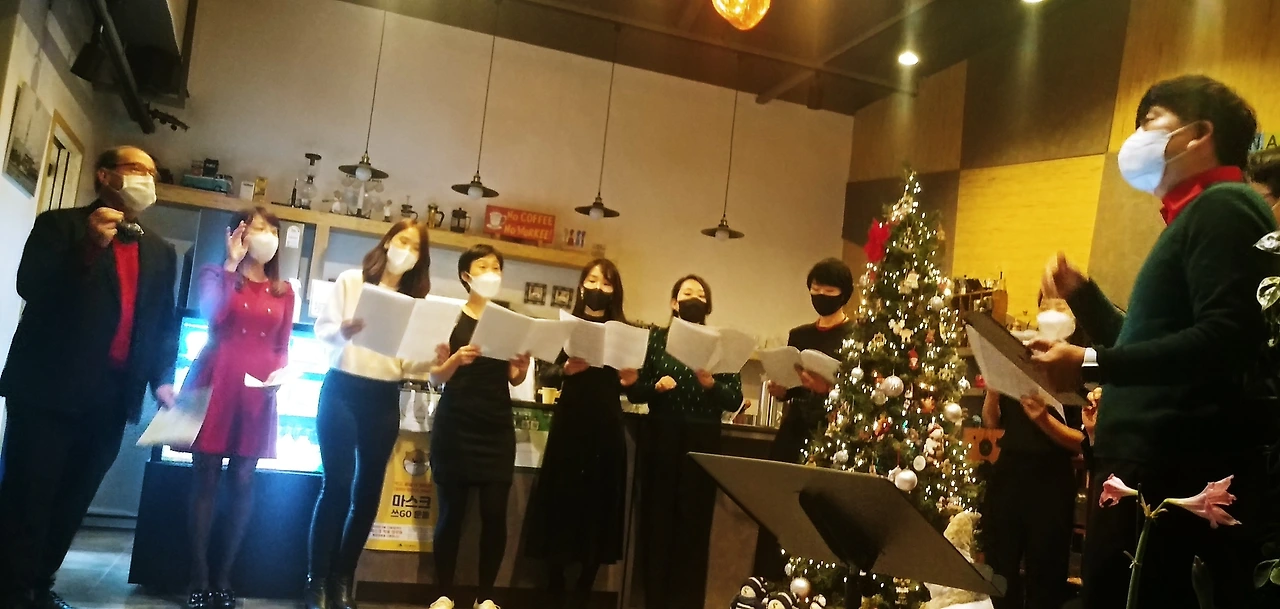 매년 2회 정기 공연을 했었는데 코로나로 2년째 못하고 있다. 그러던 중 앞산 밑 작은 카페에서 소수인원만 초청해서 크리스마스 공연을 할 수 있게 되었다. Blue skies, Walkin down the street 등 5개의 재즈곡으로 1부를 열었고 이어지는 2부는 Mary did you know, Winter wonderland, Jingle bell 등 5개의 캐럴을 부르며 마무리를 했다. 매 곡을 시작하기 전 그 곡의 배경에 대한 설명과 관객들과의 대화를 통해 진행되는 소소한 즐거움을 주는 작은 음악회를 마치며 우리 단원들의 얼굴은 모두 행복에 빛이 났다.