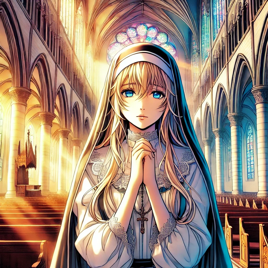 여러 수도원을 돌아다니며 금발의 신입 수녀가 있는지 알아봤지. 그런데 이 근처의 술집에서, 금발에 파란 눈을 가진 임신한 수녀 이야기를 들었어.