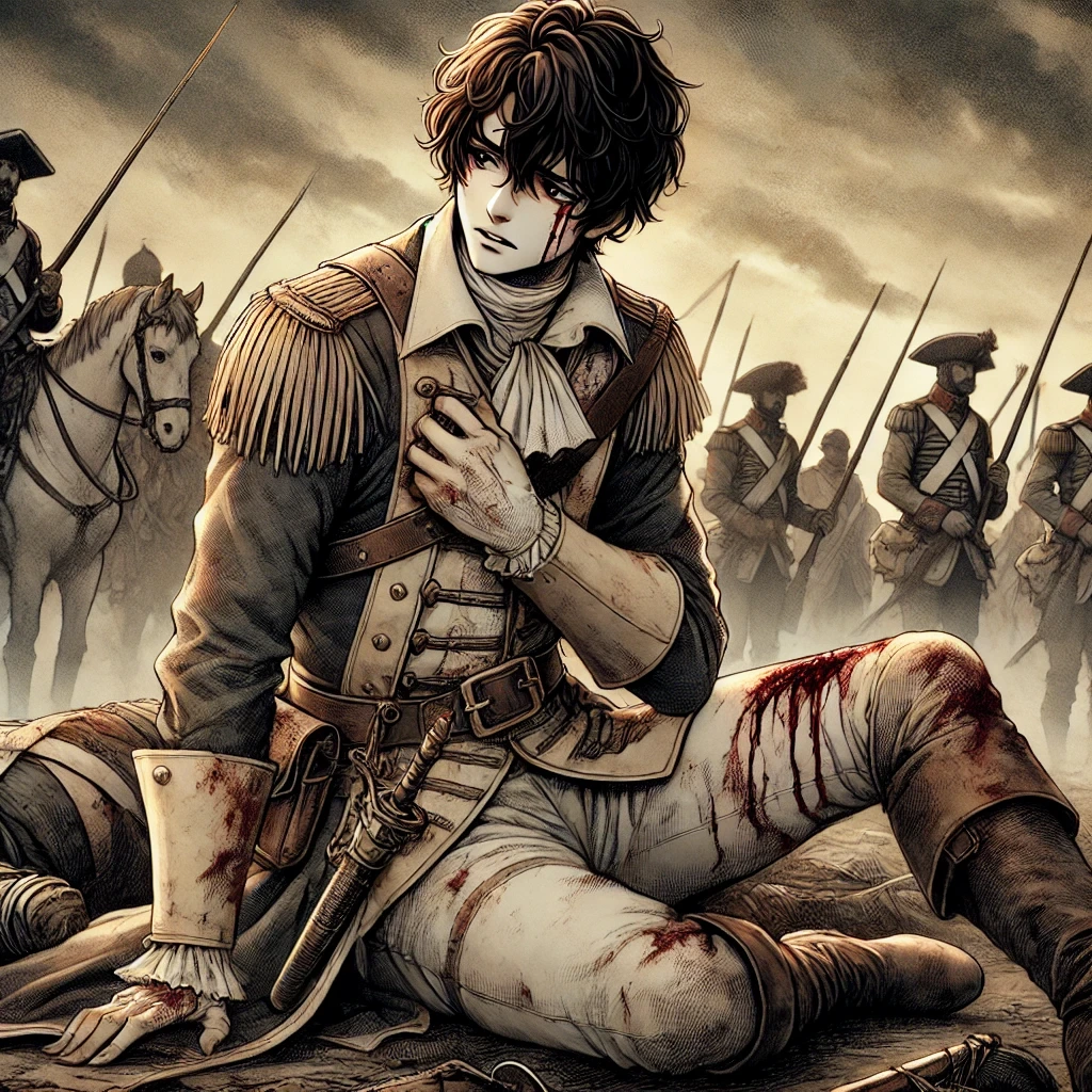 전장에서 아라미스는 몇 명의 적들이 둘러싸여 있었고 검술로 사활을 다해 적의 공격을 막고 있었다.