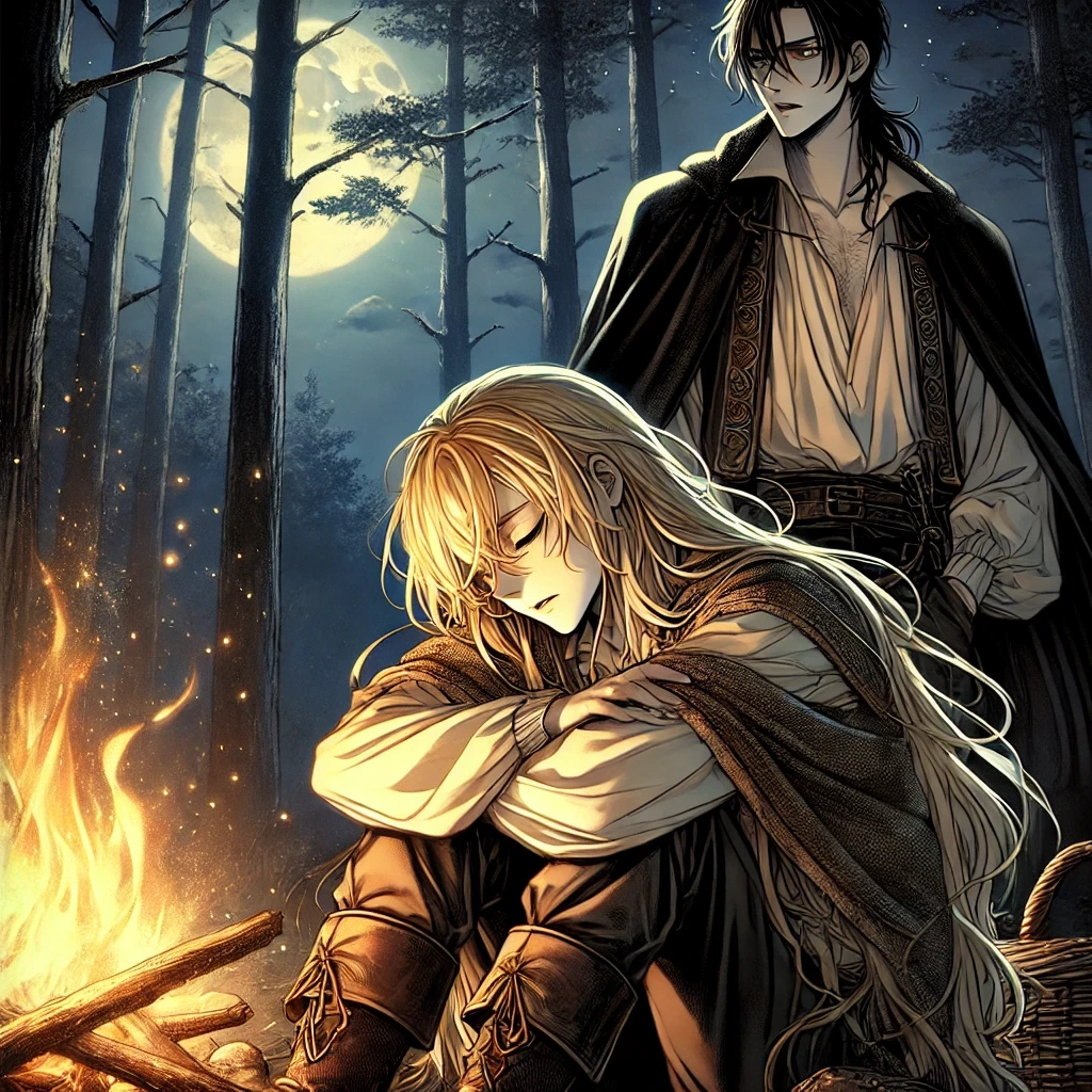 아토스는 숨을 고르지 않고 급하게 말에서 뛰어내렸다. 그리고 그곳에서 모닥불 옆에 앉아 졸고 있는 아라미스를 발견했다. 아라미스의 뒷모습은 매우 고단해 보였다. 그녀는 앉은 상태로 등과 고개를 숙이고 있었다.
