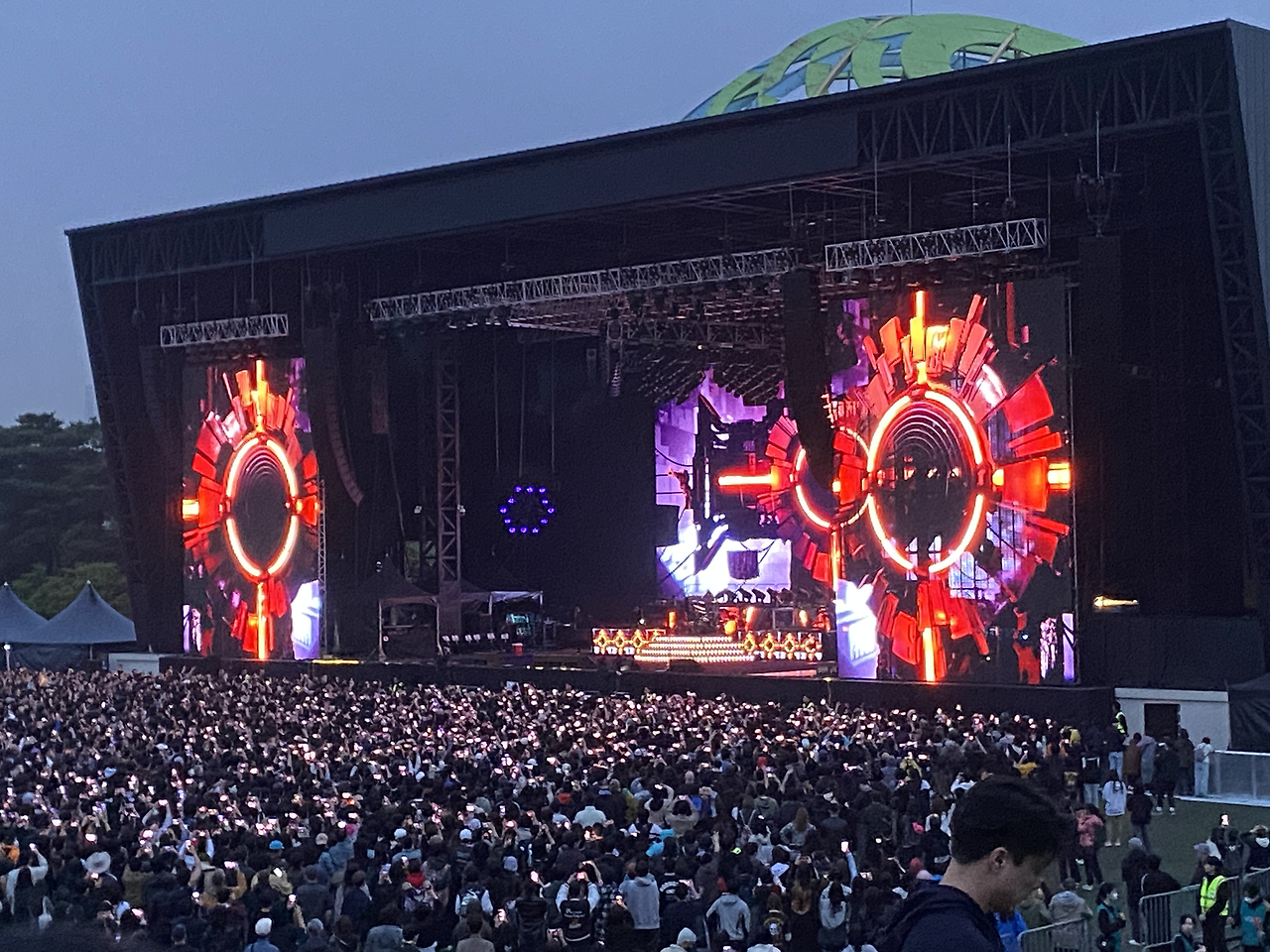 공연을 할 듯 말 듯 관중들을 괴롭히다가 7시 40분 경 갑자기 조명이 꺼지며 무대 화면이 바뀌었다.