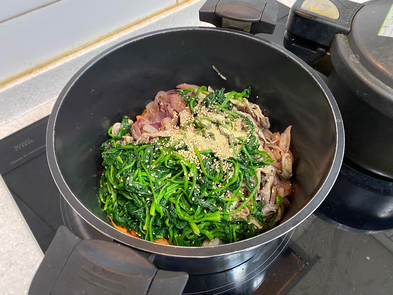 버섯과 시금치, 채 썬 당근과 양파를 볶는 일이었다.
