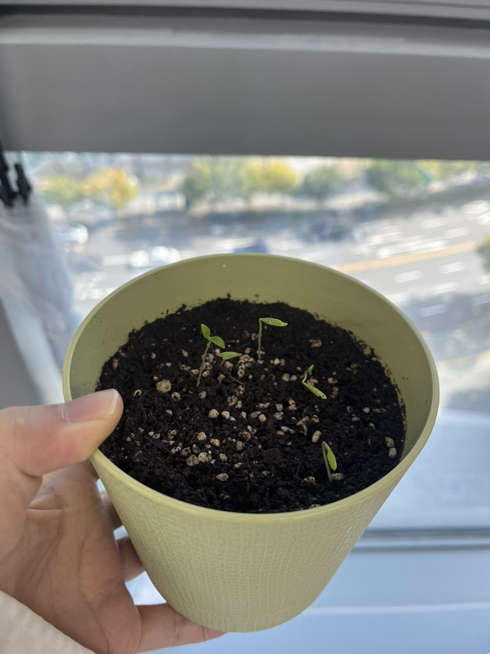 이후 급한 일을 대강 처리하고 났더니 그제야 고수 생각이 났다. 지난주처럼 여전히 흙 속에 있을 거라고 생각했지만, 그래도 약간의 왠지 모를 기대감에 바로 창가에 있는 고수 화분을 보러 갔다. 그리고 곧 너무 기뻐서 환호했다.