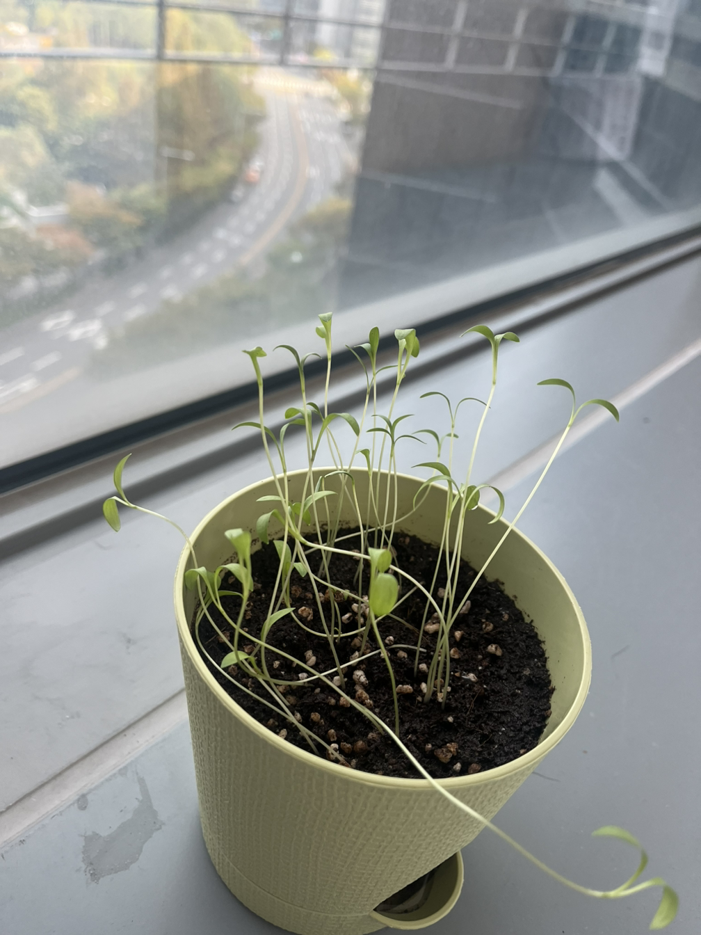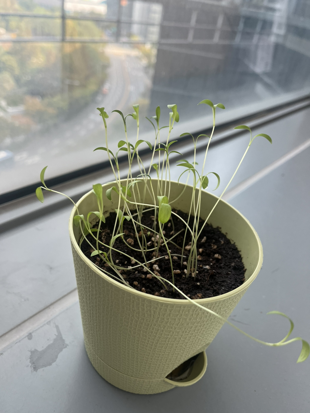 쉬러 가기 전에 물이라도 듬뿍 줬어야 하는데, 연휴를 길게 쉴 생각만 하느라 아침에 한 번 주고 말고 퇴근해 버렸다. 휴일동안 솔직히 고수가 다 시들어버려도 할 말이 없을 거라고 생각했다. 그렇게 미안함과 불안함을 가지고 다음 주에 출근했다.