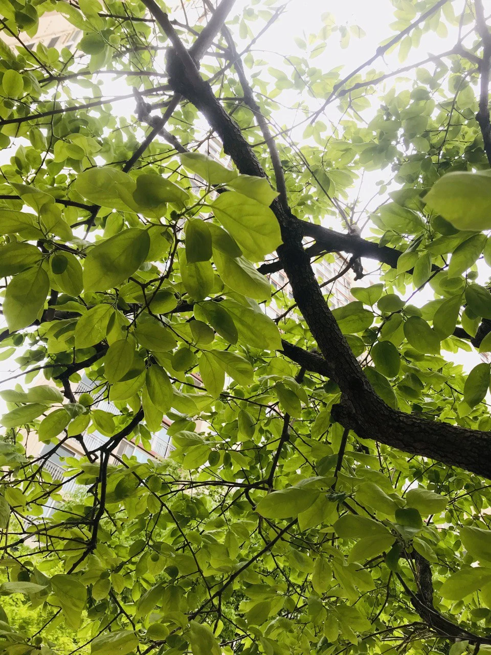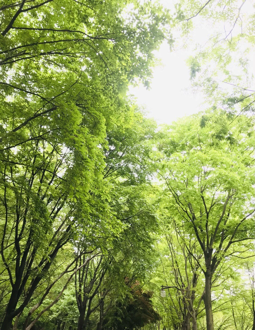 산책하기에 너무나 완벽한 지금! 사랑스러운 나뭇잎, 색의 신비를 바라볼 시간이다. 꽃이 떨어지고 나뭇잎은 형광 연둣빛 잎과 고동색 나뭇가지의 대비되는 색을 보여주고 있다. 5월이면 녹색, 6월부터는 진한 녹색으로 달라진다. 이렇게 아름다운 색의 향연을 바라볼 수 있는 지금, 집 안에서 앉아만 있기에 형광 연둣빛의 시간은 짧다.