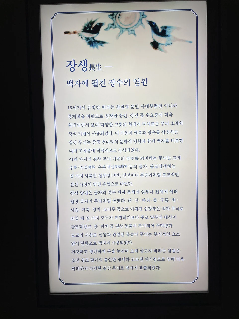 사람들의 마음을 움직이는 것에는 '건강과 행복'을 기원하는 마음이 있다. 건강하고 평안하게 복을 누리고 싶은 마음을 도자기와 그림에 그리고 집 안 가까이에 두고 감상했다. 조선 시대가 아니어도 삼한시대와 같은 훨씬 전 시대에도 풍요를 기원하거나 주변의 동물들을 생활 도구에 그려 놓았다.