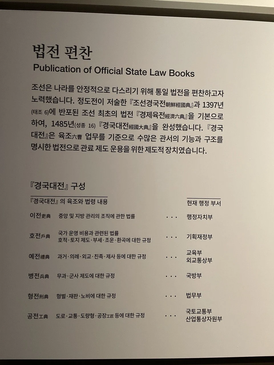 나라를 세우고, 나라를 움직이는 통치 체계가 필요하다. 회사가 1인 기업에서 규모가 커지면서 체계적인 시스템을 구축하는 것처럼. 시스템 구축의 원리는 '법'이고 법전을 편찬한다.