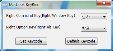 설정 후 Set Keycode 를 클릭 하면, 재부팅 후에 설정 되게 됩니다.