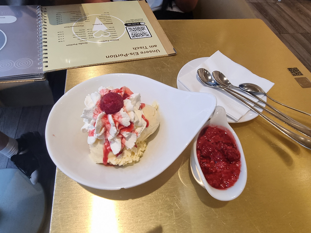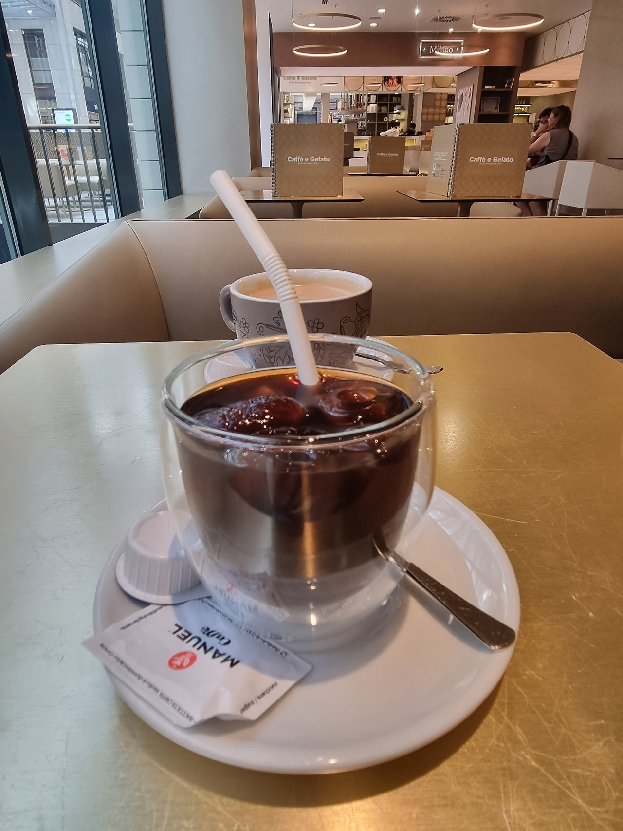 한참 걸어와 덥고 다리도 아파 내부로 들어가 마음에 드는 카페로 향했다. 커피와 아이스크림이 주력 상품인가 보다. 각자 먹고 싶은 메뉴를 골라 먹으면서 아픈 다리도 달래고 화장실을 이용하였다.