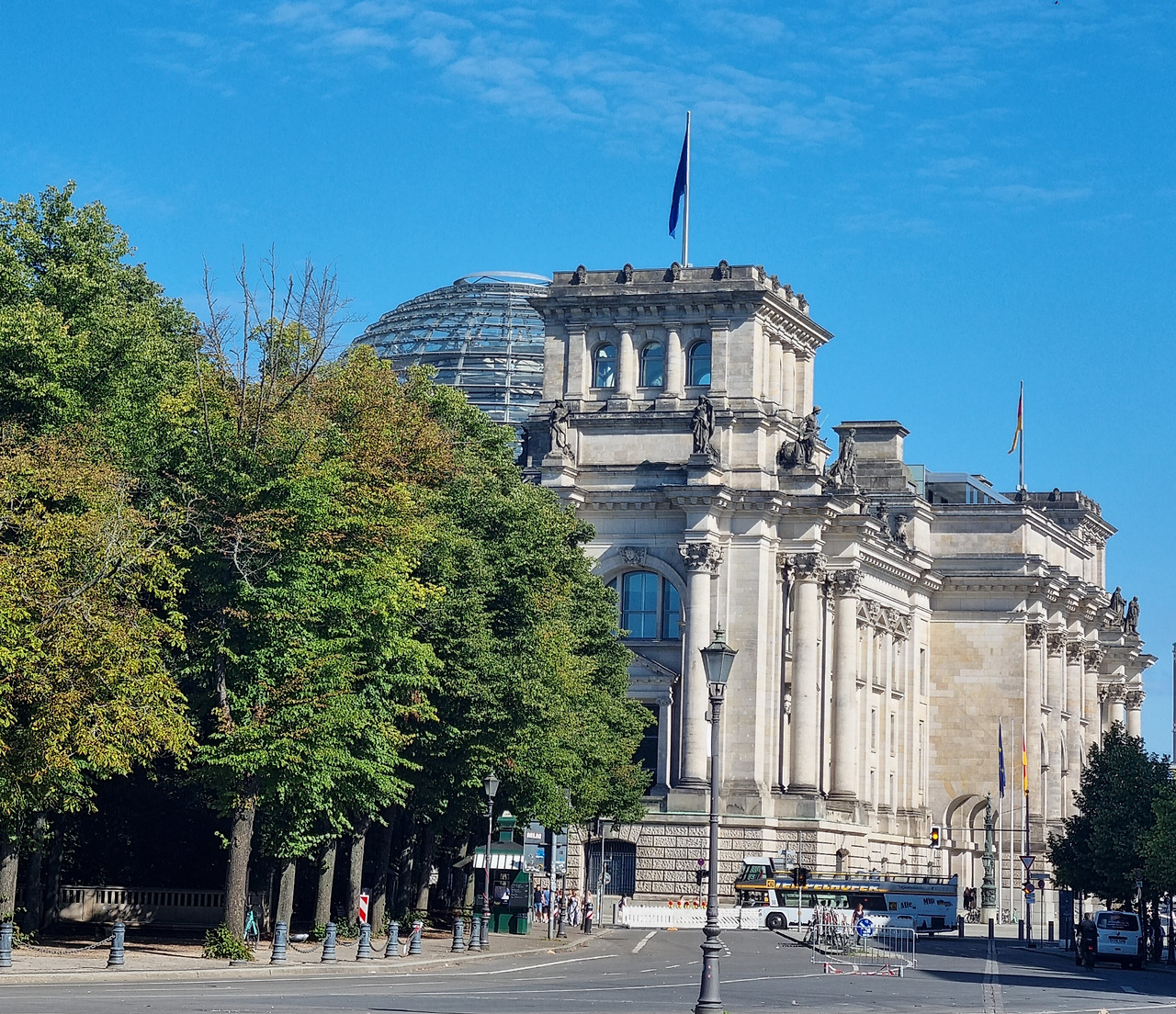 1894년에 지어진 연방의회의사당은 제2차 세계대전 때 파손되었다가 재건되었으며, 1990년 통일 이후 독일 연방의회 의사당으로 이용되고 있어 독일 민주주의를 상징하는 건물이다. 베를린 시내를 360도로 감상할 수 있는 돔 전망대가 있어 베를린의 랜드마크를 한눈에 볼 수 있다고 한다. 사전 예약을 해야 한다기에 출발 전 홈페이지를 방문하였으나 이미 8월 초까지 예약이 마감되어 있었다. 아쉽지만 건물 밖에서 감상하는 것으로 만족해야 했다.