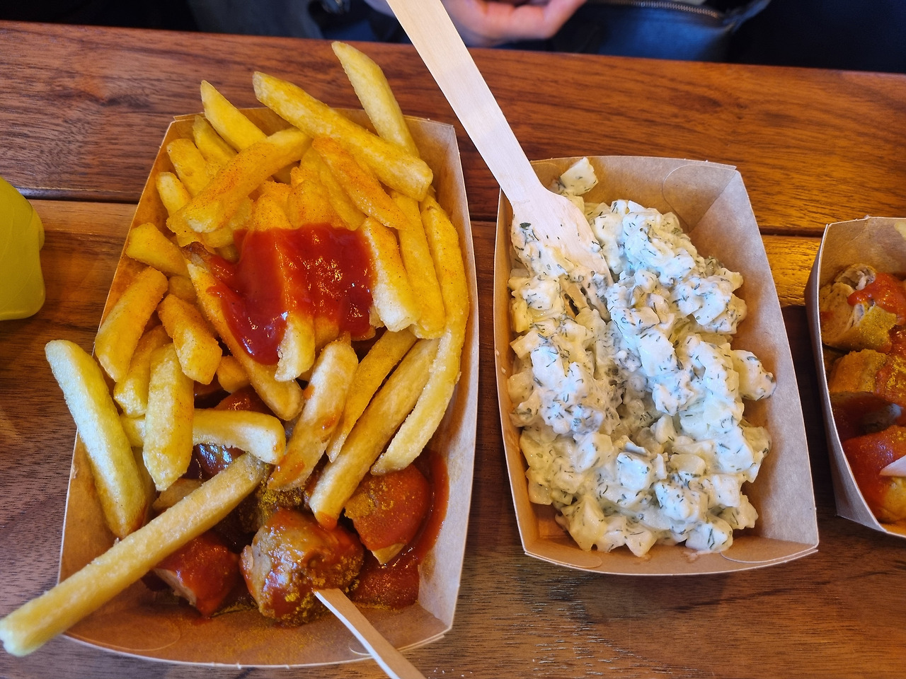 알렉산더 플라츠에 독일의 유명한 커리부어스트(Curry wurust) 체인점인 Curry 36이 있어 방문하였다. 테이블만 있어서 앉아서 먹을 수는 없고 서서 먹었다. 소시지에 카레가 들어간 토마토소스를 뿌려 감자튀김과 함께 내어준다. 짭조름하니 맥주를 부르는 맛이다. 맥주 없이 이것만 먹기가 아까워서 호텔로 들어가는 길에 Netto에 들러 맥주를 사 방에서 먹기로 하였다. (지현언니는 화장실 문제로 밖에서 맥주를 마시려 하지 않았다.) 소시지를 별로 좋아하진 않지만 필스너 맥주와 함께 커리부어스트를 먹으니 독일에 온 맛을 느낄 수 있었다.