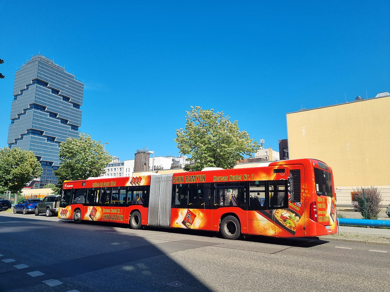 다시 길을 건너 숙소로 돌아가는 버스를 타기 위해 정류장으로 갔다. 빨간색 버스가 지나가는데 두 차량이 연결되어 엄청 길었다. 2층 버스도 아니고 지하철 같이 길어 눈길이 갔다. 그 시내버스 광고가 또다시 눈에 들어왔다. Spice up your life! Koreas Nudel Nr.1 SHIN RAMYUN 우리나라의 신라면 광고였다. Ramen이 아니라 Ramyun이었다. 신라면을 별로 좋아하진 않지만 아주 반가웠다.