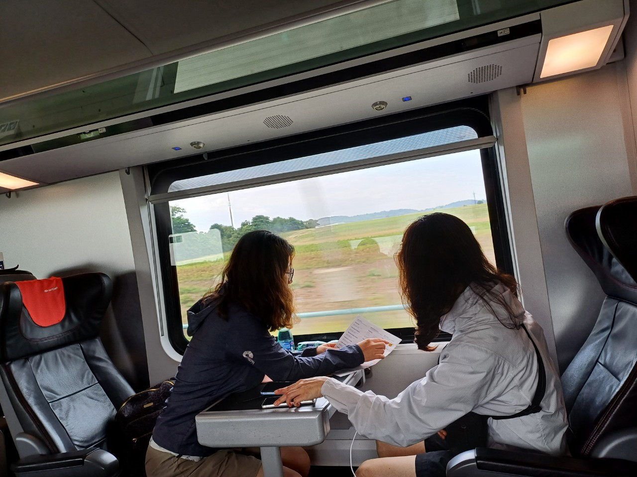 우리의 기차는 IC2173으로 이번에도 1등석으로 업그레이드시켜 주었다. 이번에는 1등석을 타볼 수 있겠지? 역에서 플랫폼을 확인하고 열차를 기다렸지만 역시나 연착이다. 그것도 50분이나. 그래도 철도 파업으로 운행 중지 되거나 차량이 취소되는 게 아니라서 다행이다. 늦게 와도 목적지에 가기면 하면 다 괜찮다. 1등석은 널찍하니 좋다. 한 객차에 좌석이 9개 정도 있고 우등버스처럼 좌석도 넓고 편안하면서 가운데 테이블도 있다. 콘센트도 있어 핸드폰 충전도 할 수 있다. 옆 객차에는 레스토랑도 있다. 우리 객차 승객만 이용할 것 같은 화장실도 엄청 넓고 쾌적하였다.