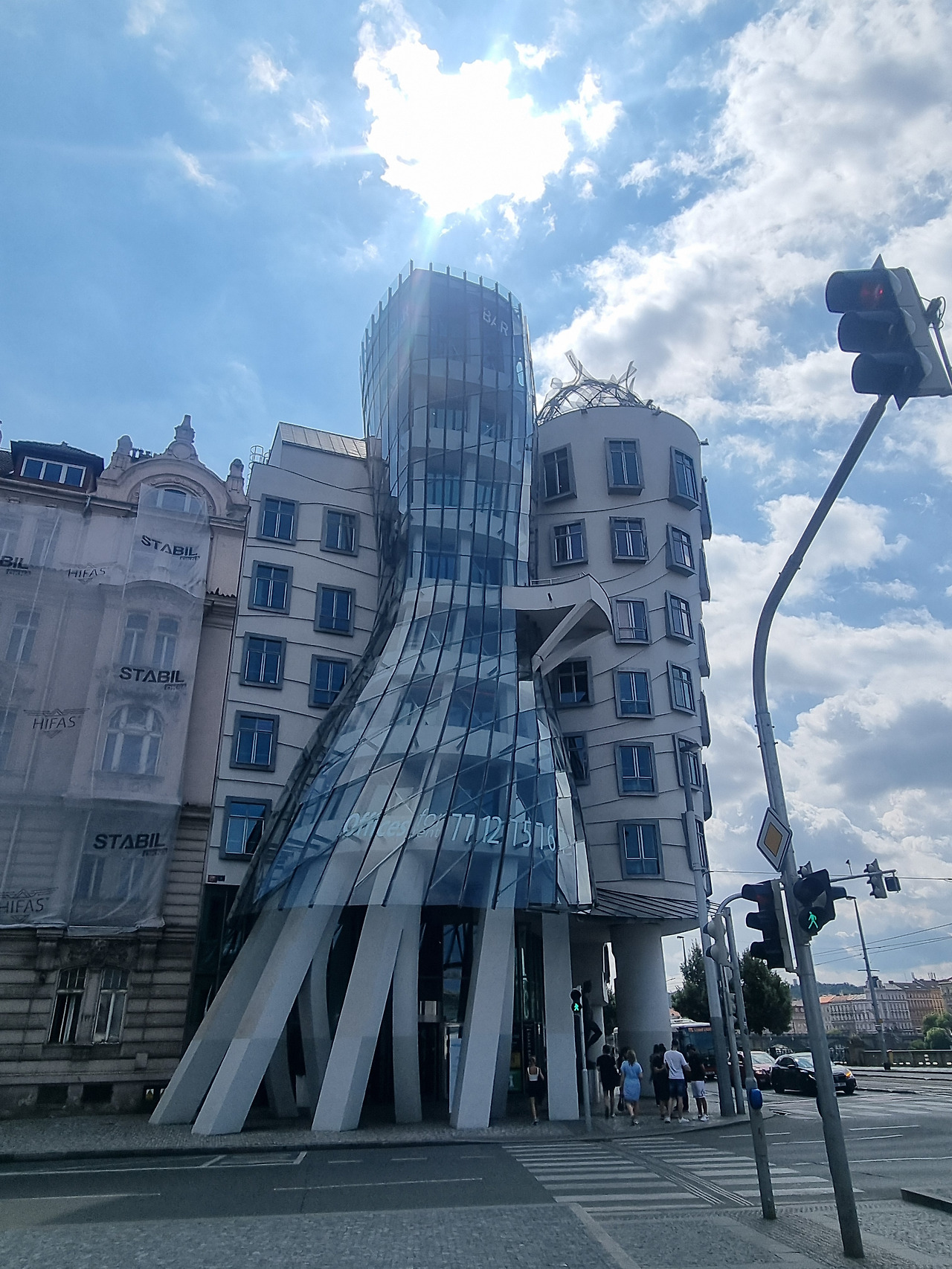 강을 따라 구시가지 방향으로 올라가다 보면 이라스쿠프 다리 바로 앞에 댄싱하우스라는 건물이 있다. 캐나다 출신 미국인 건축가 게리와 크로아티아 출신 체코 건축가 밀루니치가 함께 설계해 1996년에 준공했다고 한다. 이름처럼 진짜 원피스를 입은 허리 잘록한 여자와 그 옆의 남자가 서로 마주 보고 춤을 추는 듯하다. 건축 분야도 잘 모르지만 저렇게 곡선으로 휜 건물을 설계하고 짓는 것도 쉬운 일은 아닐 것 같다. 건물 구경을 마치고 또다시 길을 따라 한참 올라가니 슬슬 지쳐간다. 휴식이 필요할 즈음 레기 다리가 보이는 카페에 들어가 시원한 음료를 마시고 잠시 쉬었다.