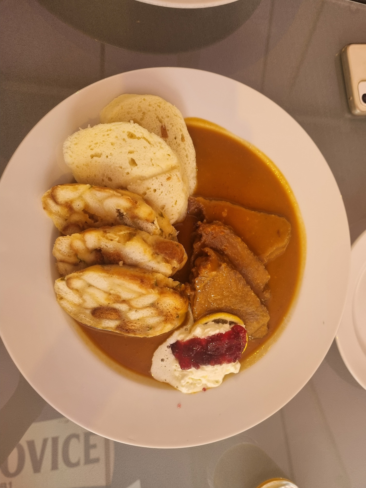 근처 마음에 드는 식당을 골라 갔다. 식당 안을 지나 안쪽으로 가니 중정처럼 보이는 정원에 야외테이블이 여러 개 있었다. 거기에 자리를 잡고 주문을 하였다. 음식도 맛있고 가격도 괜찮다. 생맥주가 맛있었다. 체코 역시 맥주의 고장인 건 확실하다.