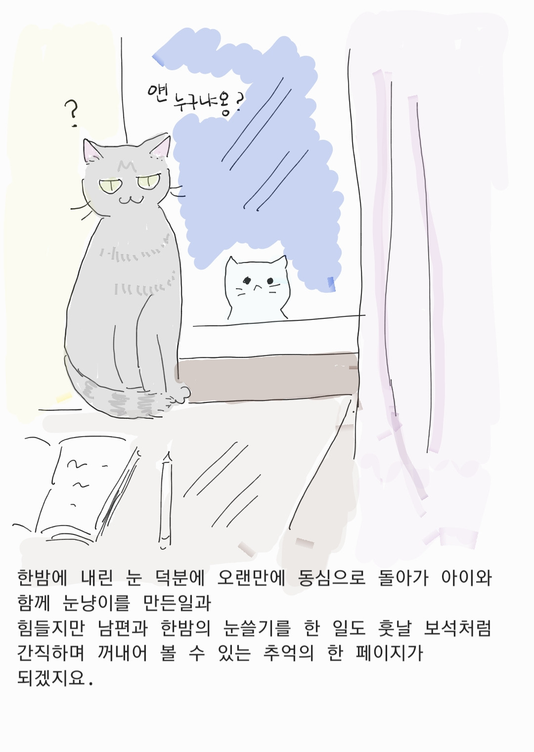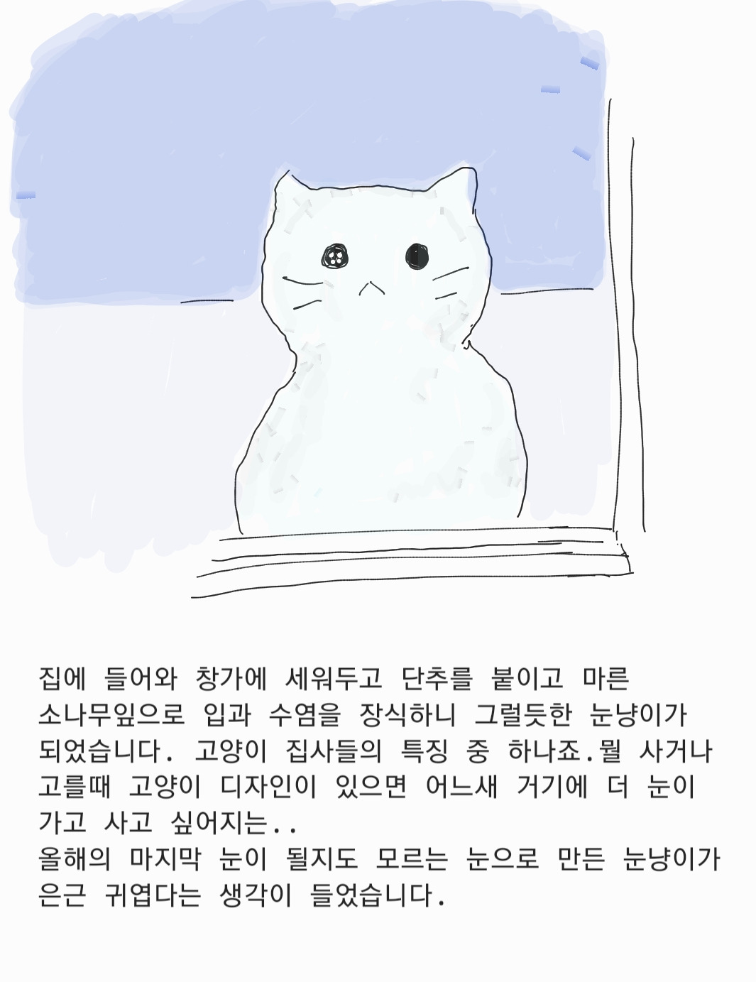 오랜만에 눈 내려 좋은날 -눈고양이