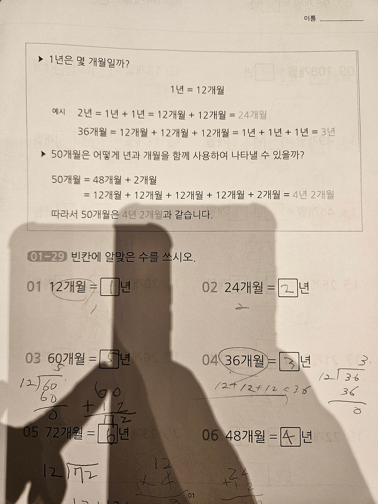 준이를 가르치면서 가장 처음 난관에 봉착한 것은 뭐든 저절로 되는 게 없다는 것이었다. 하나하나 밑작업이란 게 들어가야 진도를 나갈 수 있었다. 예컨대, 지금 2학년에서 배우고 있는 4. 시각과 시간의 단원 진도를 나가기 위해서는 수없이 많은 연산 연습이 필요했다. 1분은 60초, 1시간은 60분, 1일은 24시간, 1주일은 7일, 1년은 12개월이라는 어른에게는 너무 익숙한 단위의 반복 연습. 이게 안 되면 4단원의 문제 풀이는 엄두도 낼 수 없었다. 가뜩이나 60진법도 10진법과 헷갈려 어려운데 거기에 24시간, 7일, 12개월까지 등장하니 준이의 머릿속은 온통 뒤죽박죽이다.