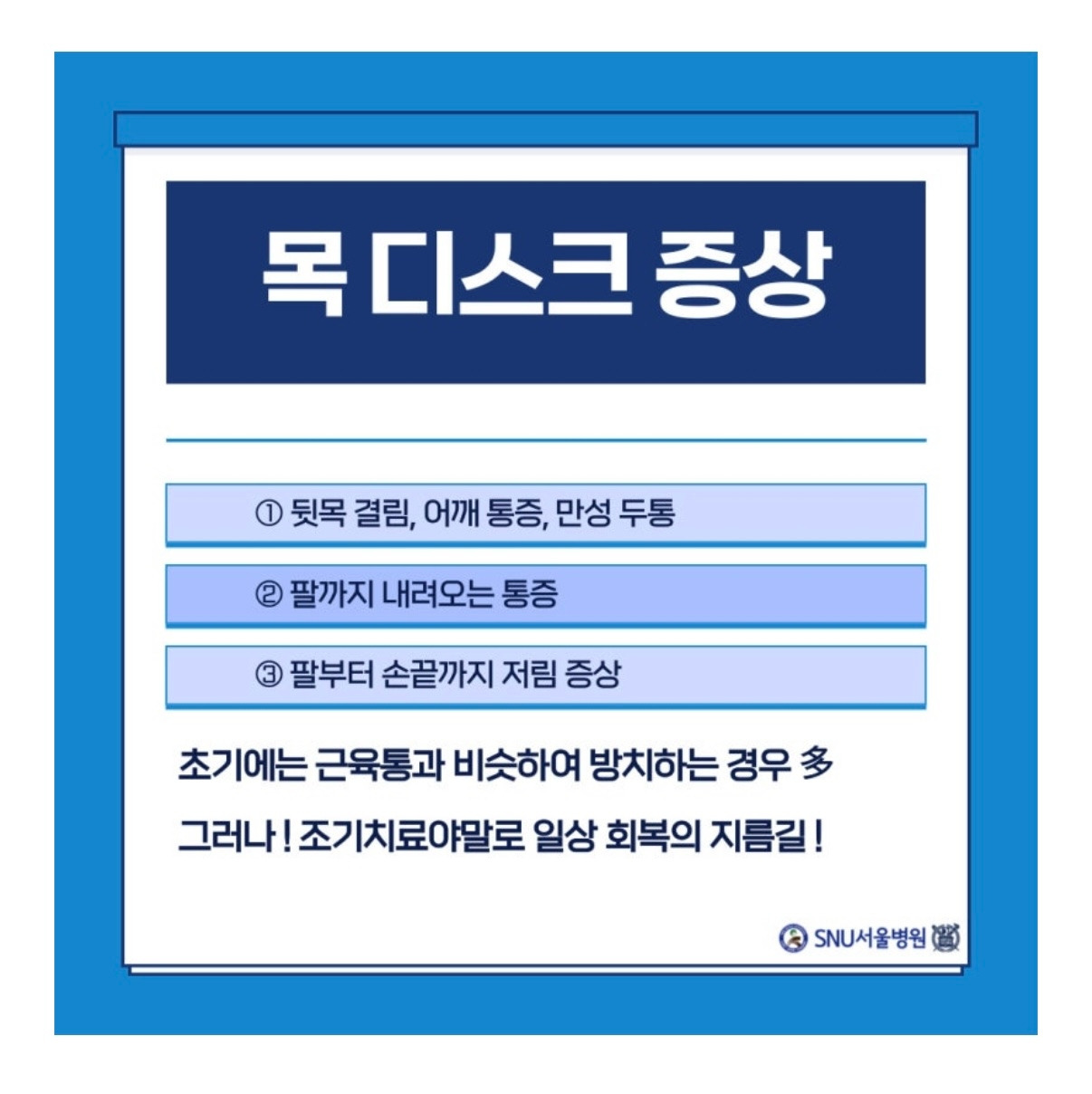 MRI를 찍고 결과를 본 의사는 “이러니 아프죠. 목 디스크네요. 담이 아니고요~! 판단은 의사가 합니다.”