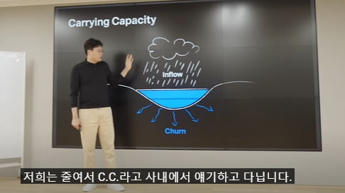 영상에 따르면, Carring Capacity(줄여서 C.C.)의 개념은 믿을 수 없을 정도로 간단하다. Carring Capacity는 프로덕트의 한계 수용력, 쉽게 말해 우리 앱/웹/프로덕트가 가질 수 있는 최대 User(영상에서는 MAU로 이야기한다.)의 한계를 나타내는 개념이다. 이는 프로덕트를 만들고 있는 PO뿐만 아니라, 프로덕트와 관련된 일을 하는 사람이라면 누구든 궁금해할 내용이다. 제품의 한계를 알 수 있다면 언제, 무엇을, 어떻게 해야 할 지도 미리 예측하고 대비할 수 있기 때문이다.