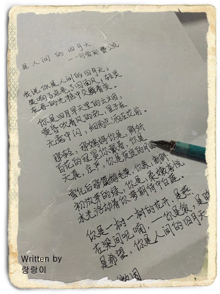 시 : 你是人间的四月天(그대는 이 세상 4월의 좋은 날입니다)