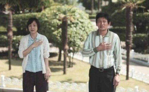 황정민과 김윤진이 부부 싸움을 하다가도, 애국가가 들리니 바로 멈추고 경례하는 장면이죠.