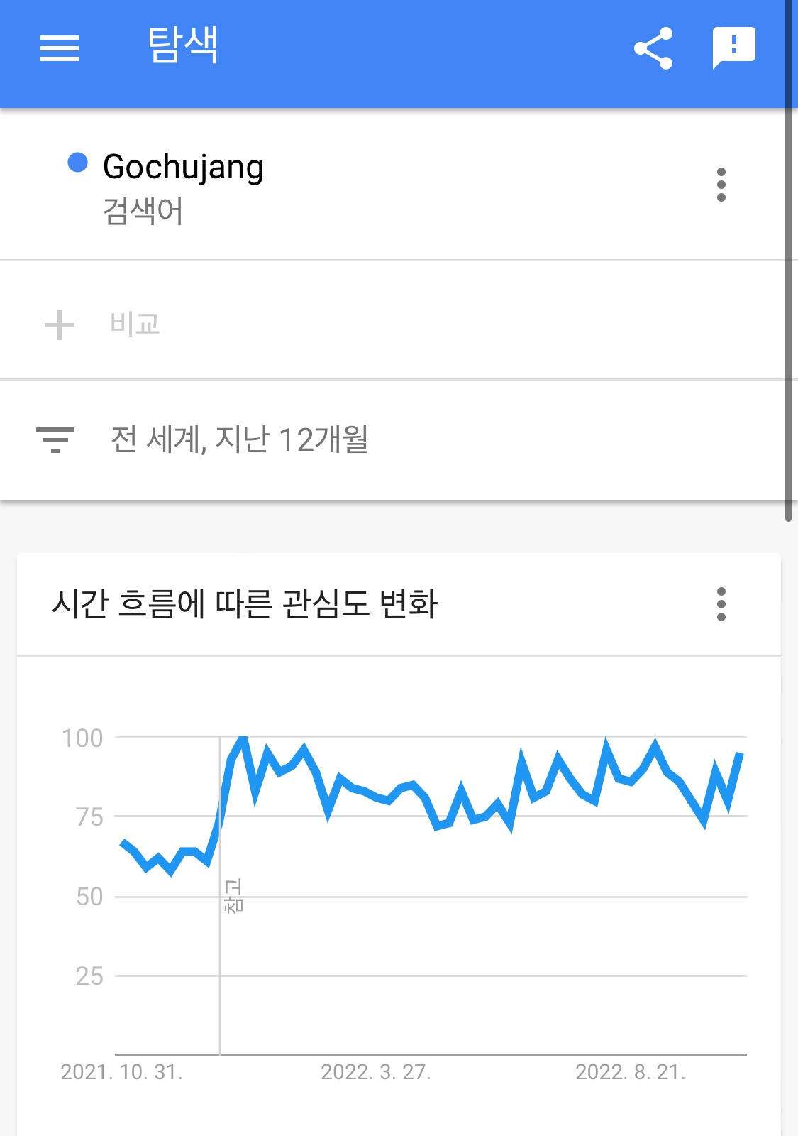 아직 완제품이 나오지 않아서 제품 촬영사진이 없기 때문에 인터넷에서 수집한 고추장 관련 사진을 임의로 넣어서 컨셉보드를 만들었다.제품 네이밍은 영어로 ”Gochujang“으로 정했다. 고추장을 번역한 “Red pepper paste”는 이름 길이도 길뿐만 아니라 구글 트렌드 검색 결과, 관심도가 들쑥날쑥했다. “Gochujang”은 구글 트렌드 검색에서 관심도가 큰 기복없이 높은 편이었다.