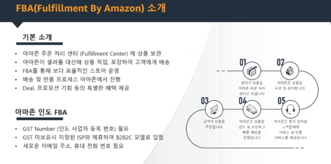 아마존 인도에 FBA(Fulfillment by Amazon. 아마존에서 창고보관, 물품 포장, 배송 등의 서비스를 대신해주는 시스템)로 입점하기 위해서는 인도의 사업자등록번호(GST number)가 필요하다. 그렇지만 당장 현지에 법인을 설립할 순 없기 때문에 나처럼 사업자등록번호가 없는 셀러들은 인도의 외부 사업자와 제휴하는 ISP모델로 입점한다. 이들에게 일정 수수료를 지불하고 도움을 받을 수 있다. 이들의 업무 범위는 인도시장 관련 컨설팅과 세금, 통관, 아마존 창고 입고 등의 업무 대행, 판매대금 정산 등이다. 아마존 인디아에 진출하기 위해 필요한 사업 파트너인 셈이다.