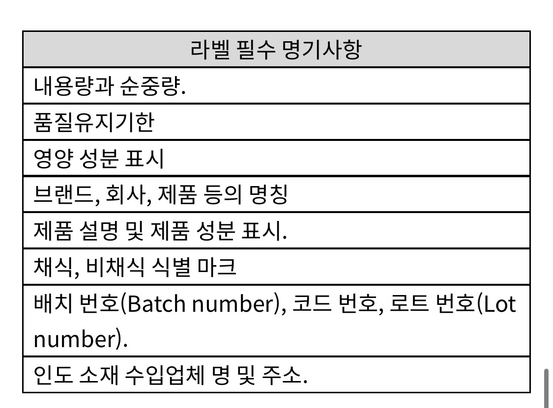 미팅에서 인도 현지회사로부터 제품의 유통기한이 너무 짧으니 유통기한을 늘려달라는 피드백을 받았다. 수출용 제품은 1년 정도의 유통기한이 권장된다고 했다. 개발업체에 문의해보겠다고 답변했다. 또한 지금 당장 내가 해야할 일은 제품의 원료 리스트를 작성하여 인도 인증 관련 에이전시에 문의해보는 것이라고 했다.