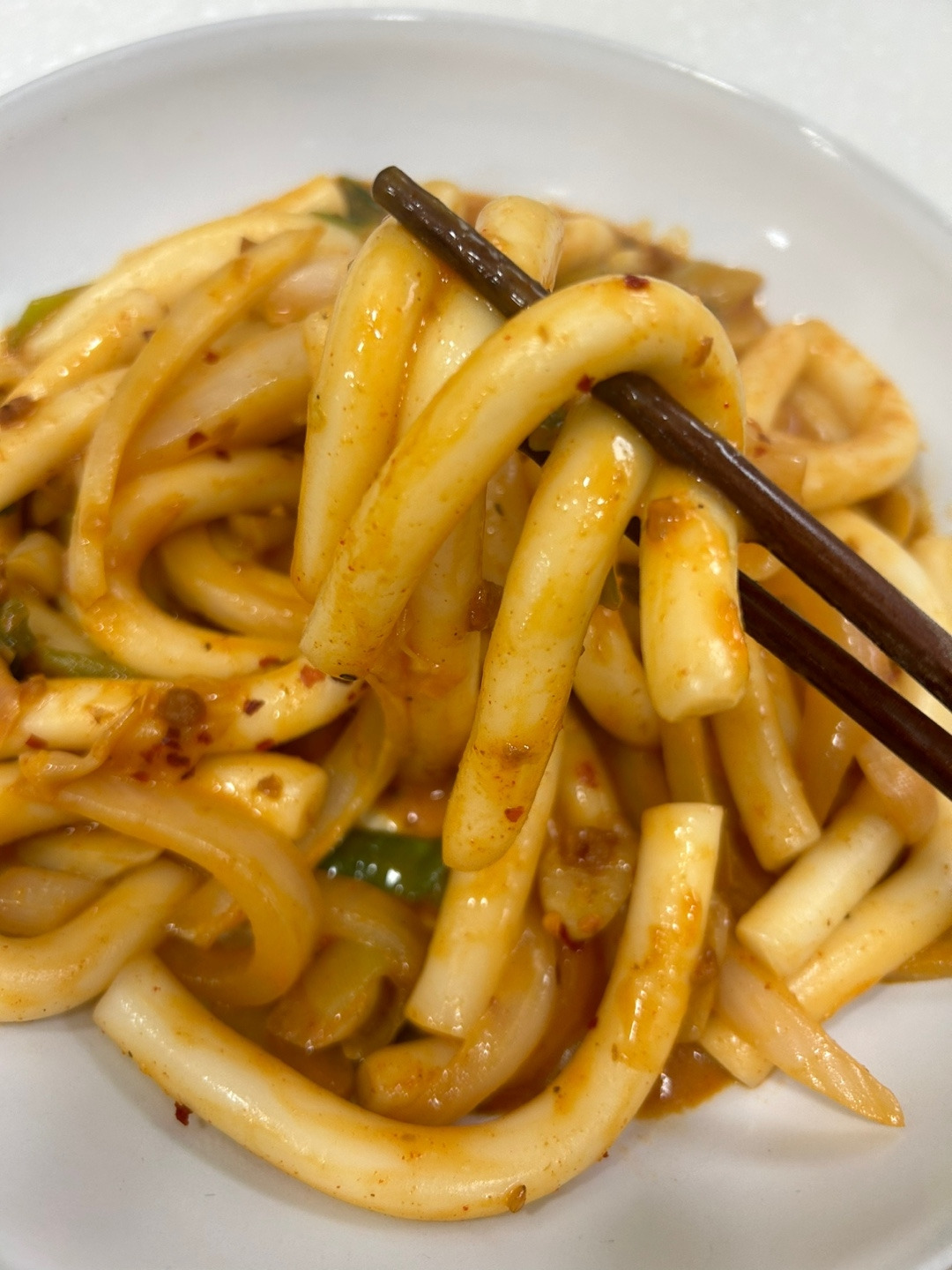 누들 떡볶이떡 뿐만 아니라 숏파스타 2종을 넣어서 재미있는 식감을 낼 수 있도록 해보았으며, 색색깔의 비주얼을 위해 어린잎 채소와 파프리카, 채소 튀김 등을 토핑으로 올려보았다.