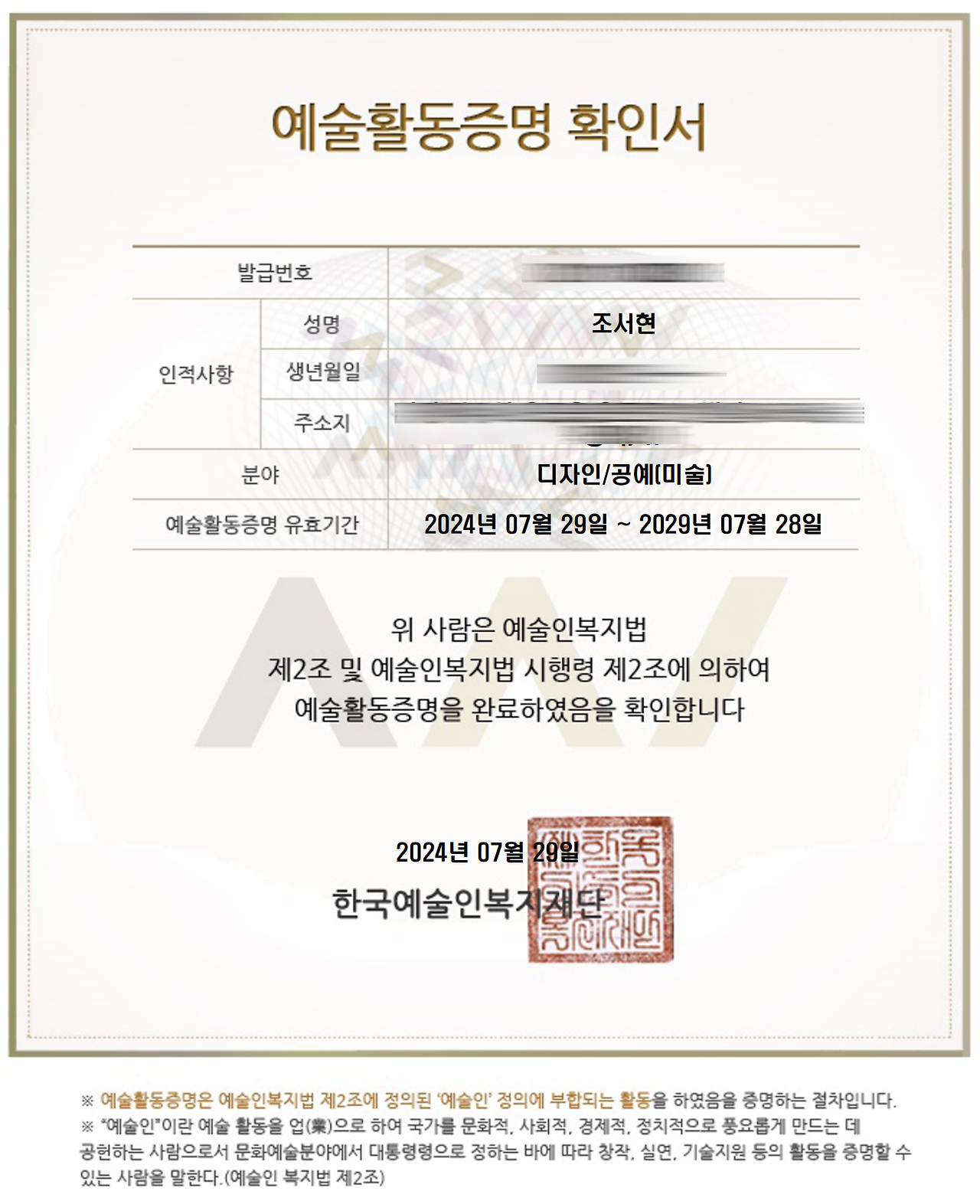 예술활동증명이라는 제도가 있는건 몇 년 전 알았지만 게으른 자는 올해가 되어서야 행동으로 옮기게 되었습니다. 4월에 신청했고 다행히 서류 준비를 꽤 해서 그런지 보완요청 없이 진행 되었습니다. 그럼에도 4개월이나 걸렸어요. 정말 이 부분은 어떻게 좀 해주셨으면. ㅠㅠ