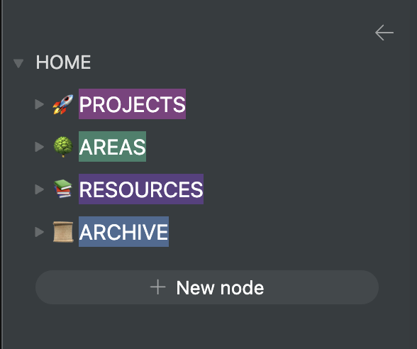 일단 장기간의 굵직한 목표나 할일은 PARA 방법론으로 워크플로위(WorkFlowy)에 정리하고 있습니다. 방법론이라니 뭐 거창하게 느껴질 수 있는데 그냥 딱 아래 4가지 카테고리로 나누는 것입니다.