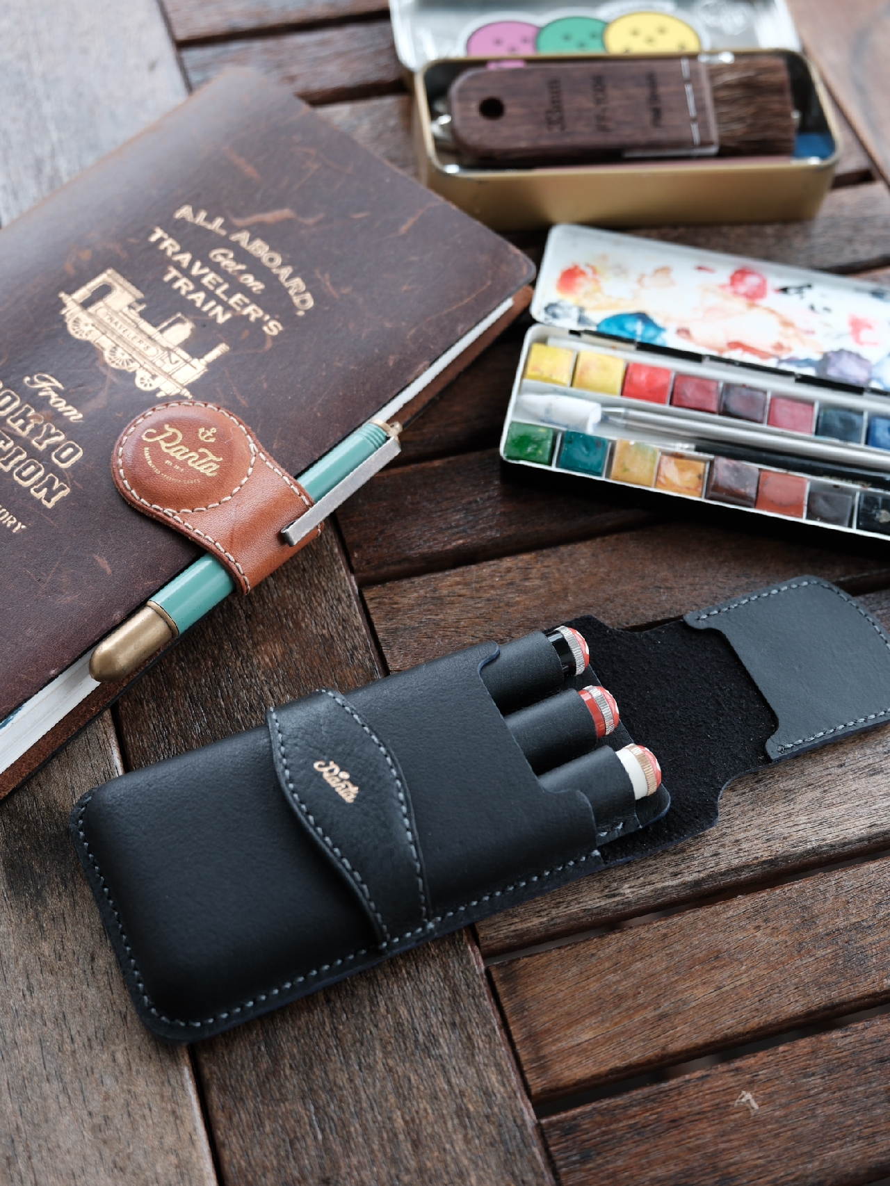 우리나라 사람들은 유독 숫자 3,5 같은 홀수를 좋아한다던데 저도 그런가봐요. 세 개를 딱 한 곳에 넣고 싶어 펜파우치를 블랙으로 새로 만들어봤습니다. 이미 브라운으로 만들어둔게 있는데도 새로 만들고 싶더라구요.