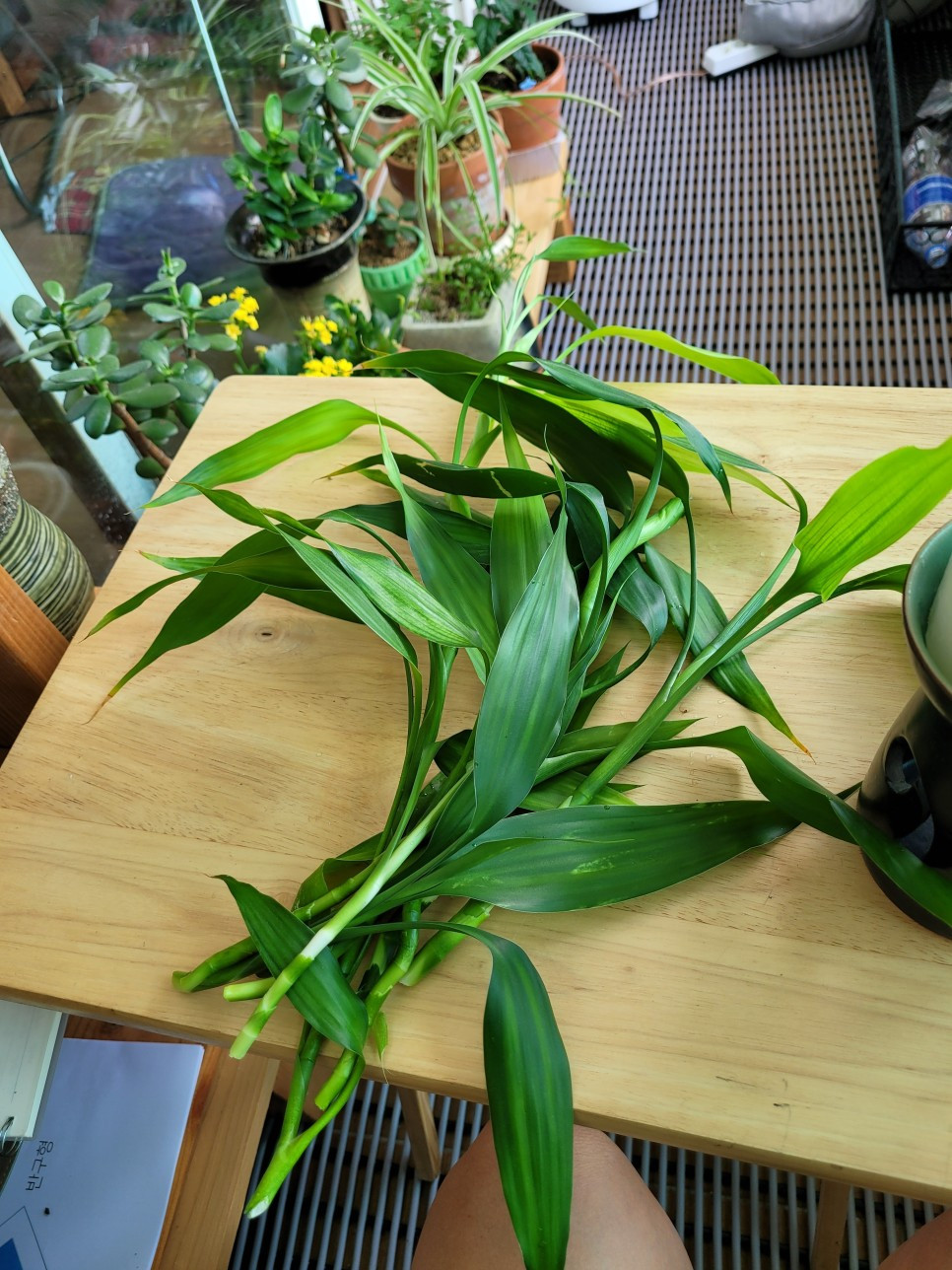 개운죽이 너무 자라 이러다 천장까지 닿을까 걱정이었는데 2m 이상 자라나니, 환경은 같아도 잎이 노래지길래 전문가에게 물었습니다. 수명이 다해서 그렇다고 했습니다. 더 이상 크지 않고 잎만 노래져서 과감히 잘랐습니다. 스킨답서스도 너무 길어져서 잘라 별도로 물꽂이를 했습니다.