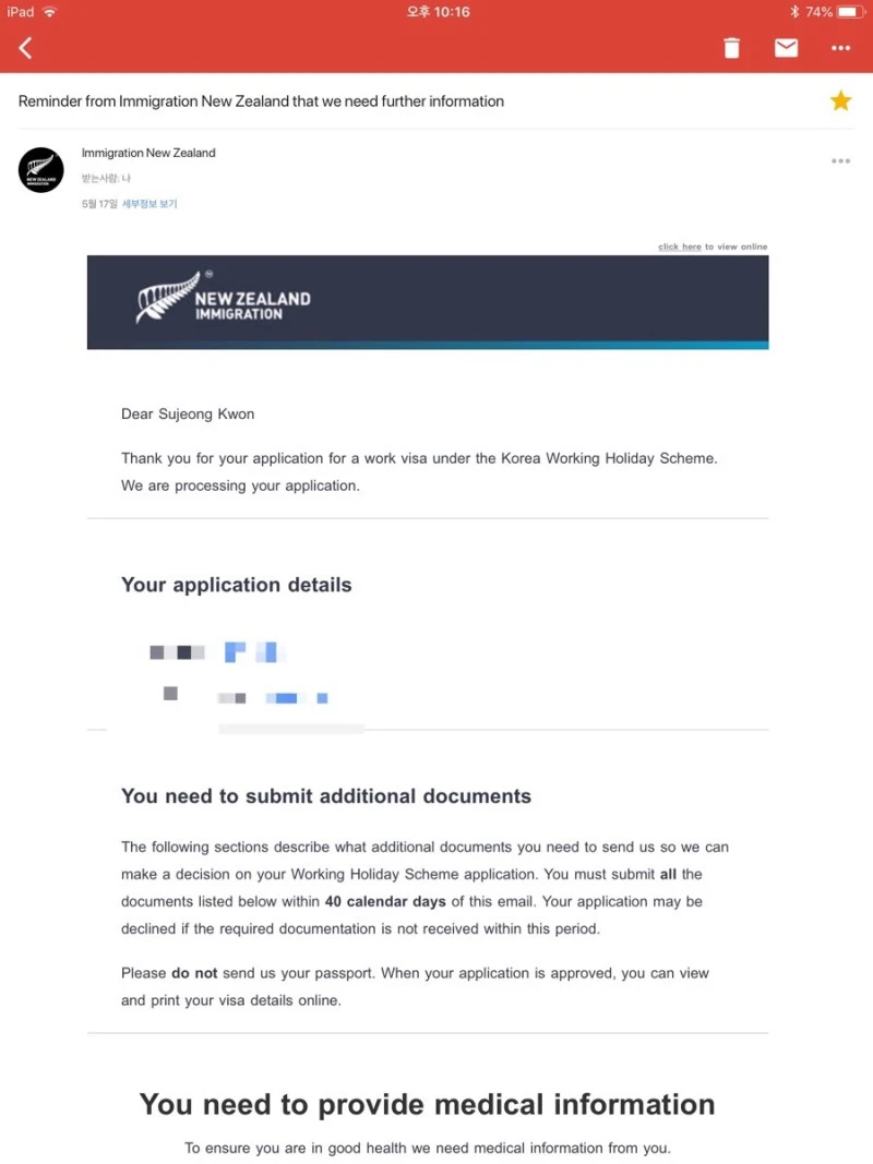 그리고 뉴질랜드 워킹홀리데이 신청일자인 2018.05.16일만을 손꼽아 기다렸어요.