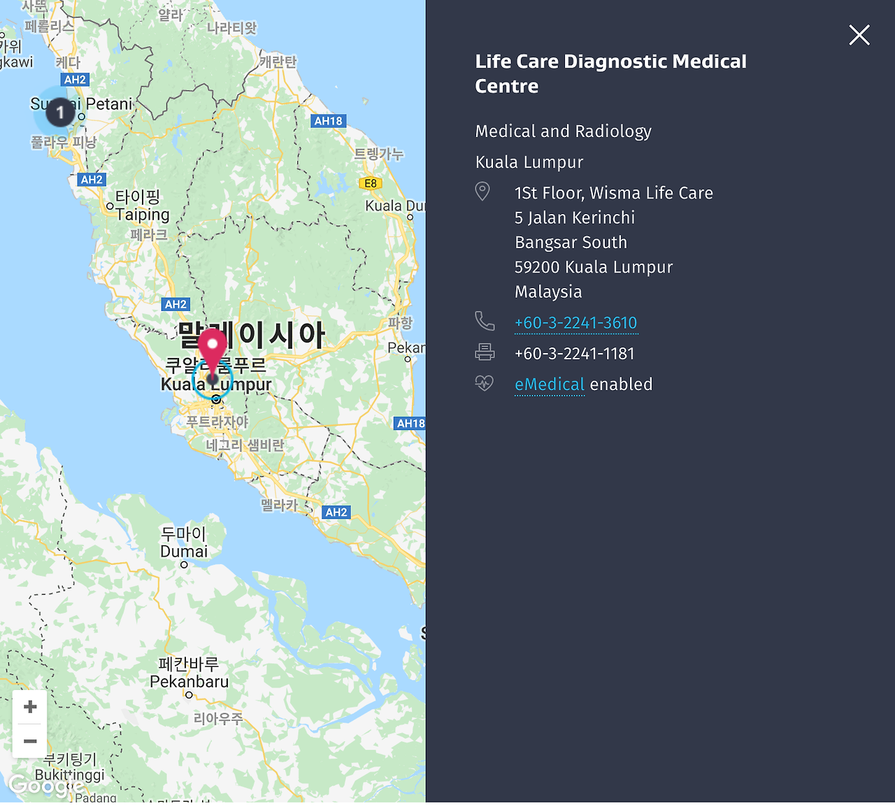 그래서 쿠알라룸푸르의 병원으로 찾아갔어요.