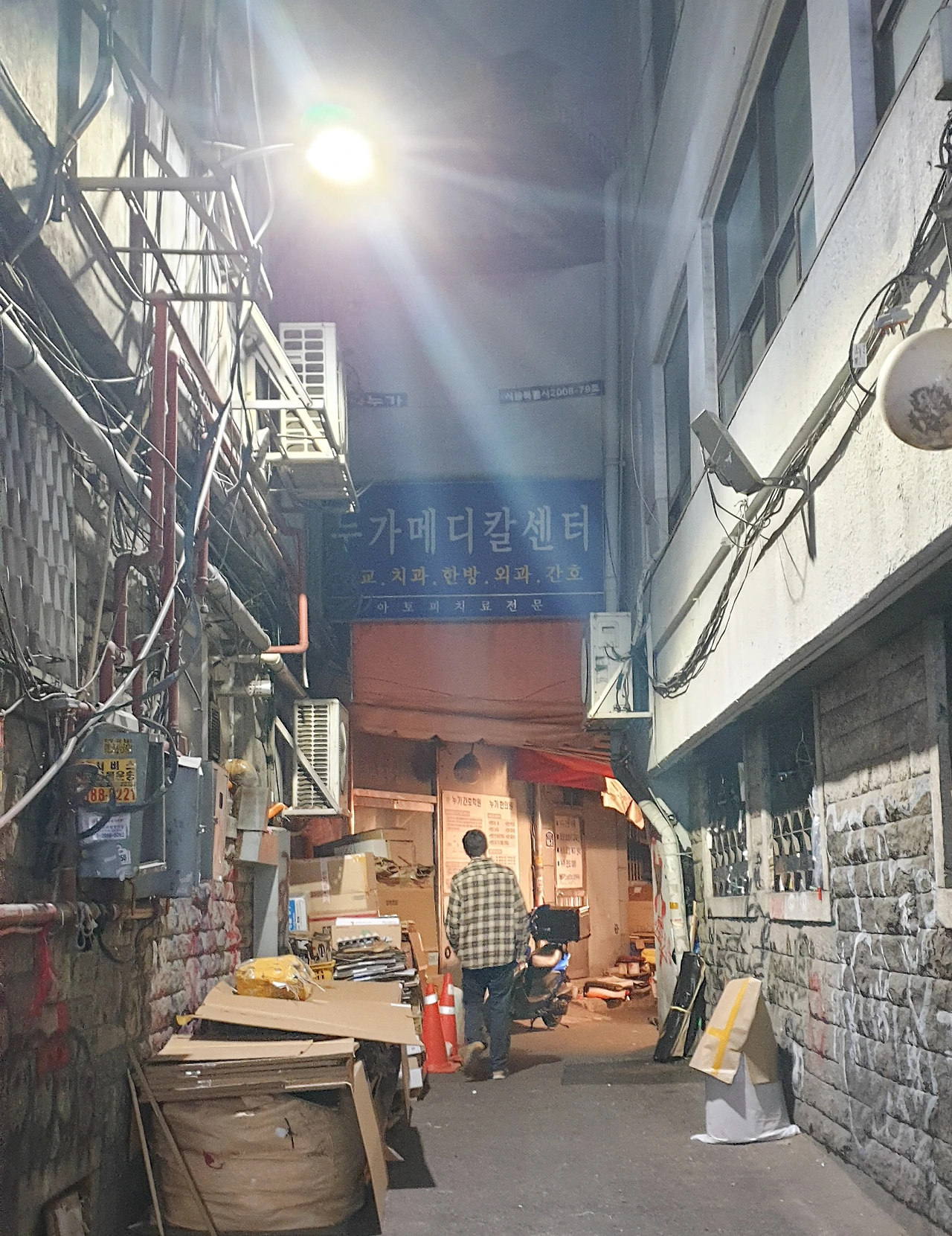 반지하 원룸에서 살며 고군분투하던 중 미둥이들이 한국에 왔다. 그들은 가끔 함께 걷다가 갑자기 걸음을 멈추고 휴대폰을 들고 사진을 찍었다. 하루에 6-7시간을 걸었고 특히 반짝이는 밤 풍경을 너무나 좋아했다. 미둥이는 크고 반짝이고 화려한 대도시의 풍경만 좋아하는 것이 아니었다. 더 사랑하는 풍경은 오래되고 낡은 뒷골목이었다. 높은 빌딩 뒤에 가려진 오래되고 낡은 곰팡내 나는 뒷골목들을 보며 미둥이들은 감탄을 머지않았다. 나와 언니는 편견에 가려 보지 못하는 도시의 아름다움을 그들의 눈으로는 볼 수 있었다. 몇십 년 된 건물이라 외관을 보면 다 쓰러져가고 귀신 나올 것 같은 건물을 미둥이들은 꼭 한 번씩 들어갔다 온다. 나와 언니가 용기 내 한번 들어갔다가 정말 귀신 씌이는 줄 알았고 그다음부터는 절대 따라 들어가지 않는다.