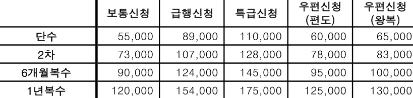 - 단수30일 : 55,000원(보통 신청 3박 4일)