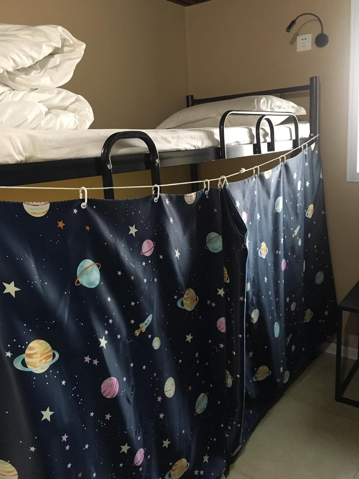 무엇보다도 마음에 든 곳은 침대다! 발을 쭈욱 뻗고 누워도 남는 자리에 커튼을 치면 나만의 아늑한 공간이 되는데