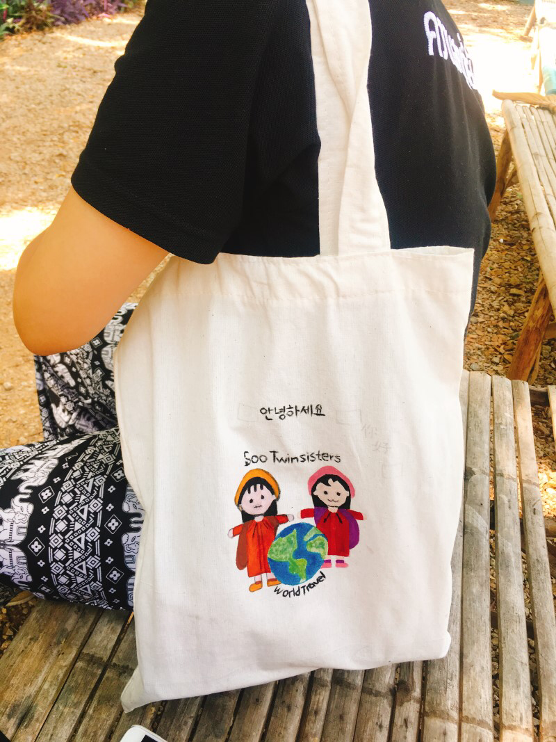 - 에코백 만들기 : 헉그린 멤버인 뿌이를 도와 직접 천을 잘라 재봉틀을 하고, 로고 프린트를 했다. 약 300개의 가방을 만들고 나니 뿌듯했다. 또한 우리도 하나 우리만의 가방을 얻게 되었다. 그림은 우리가 직접 그렸다 ㅎㅎ