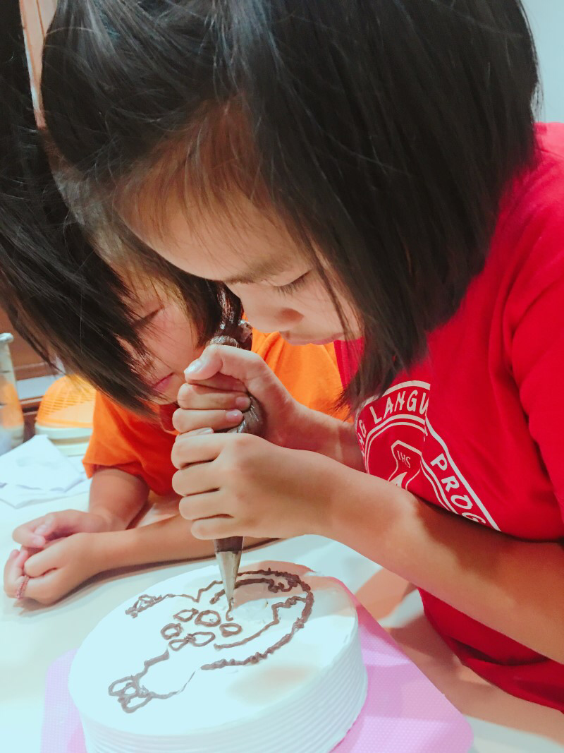 우리는 홈스테이하는 집의 딸 '옴'이 손수 그린 케이크를 먹고 크림을 온몸에 묻혀가며 뛰놀았다.