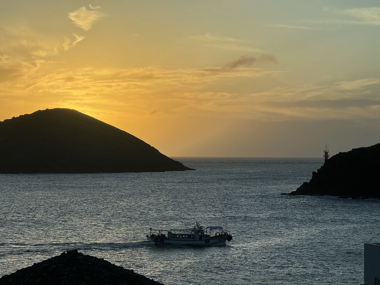 수평선 아래로 노을이 천천히 한 겹씩 떨어진다.